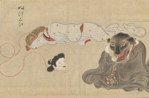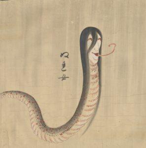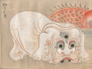 This piece is also listed with the name of Bakemonozukushie (化物尽繪 – Index of Supernatural Creatures), however, in this context it comes in the form of a book and not a picture scroll. Only one copy of it in book form exists and again contains no name for it’s creator.1