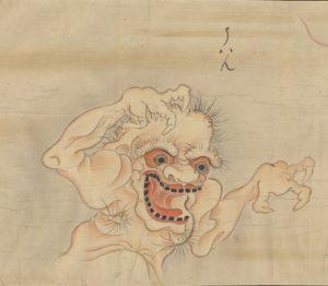 The Bakemono no e (化物之繪 – Illustrations of Bakemono) is a Yōkai picture scroll which dates to the Edo Period, and was likely made in the 17th Century. The creator of this work is not known. These ‘indexes’ of supernatural creators were extremely popular during the Edo Period, listing creatures, their names, and at times short annotations alongside these creatures. This scroll in question has no annotations and is stored in the Bringham Young University in Utah.