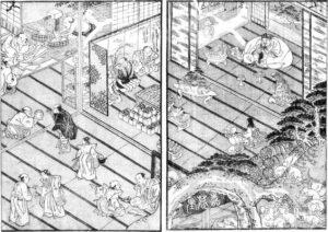 The books were inspired by the 10th Century Demon Horde’s Night Parade. These books, alongside the previous book, the Gazu Hyakki Yagyō, Konjaku Gazu Zoku Hyakki and the following book, the Hyakki Tsurezure Bukuro are different to earlier depictions of Yōkai as they place the Yōkai in a time and a place instead of just depicting them on a blank background.