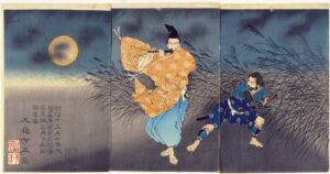 | Kaguya Hime returns to the Moon. | Yamato Takeru disguised as a woman. |